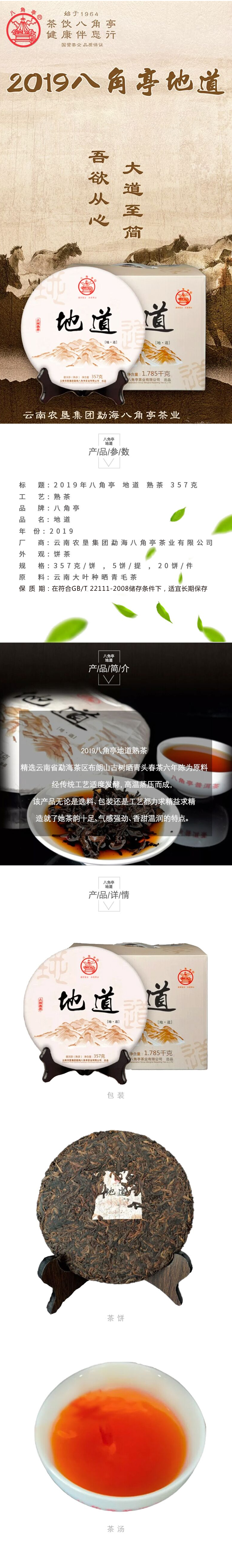 八角亭茶業原為黎明農工商聯合公司(黎明農場)下屬茶葉加工組,始于一九六四年,從事茶葉產品開發生產五十余載,一九八四年建成標準化工廠,二00一年開始生產普洱茶,截止到2013年,公司累計生產各種普洱茶數百個品種共12000余噸。